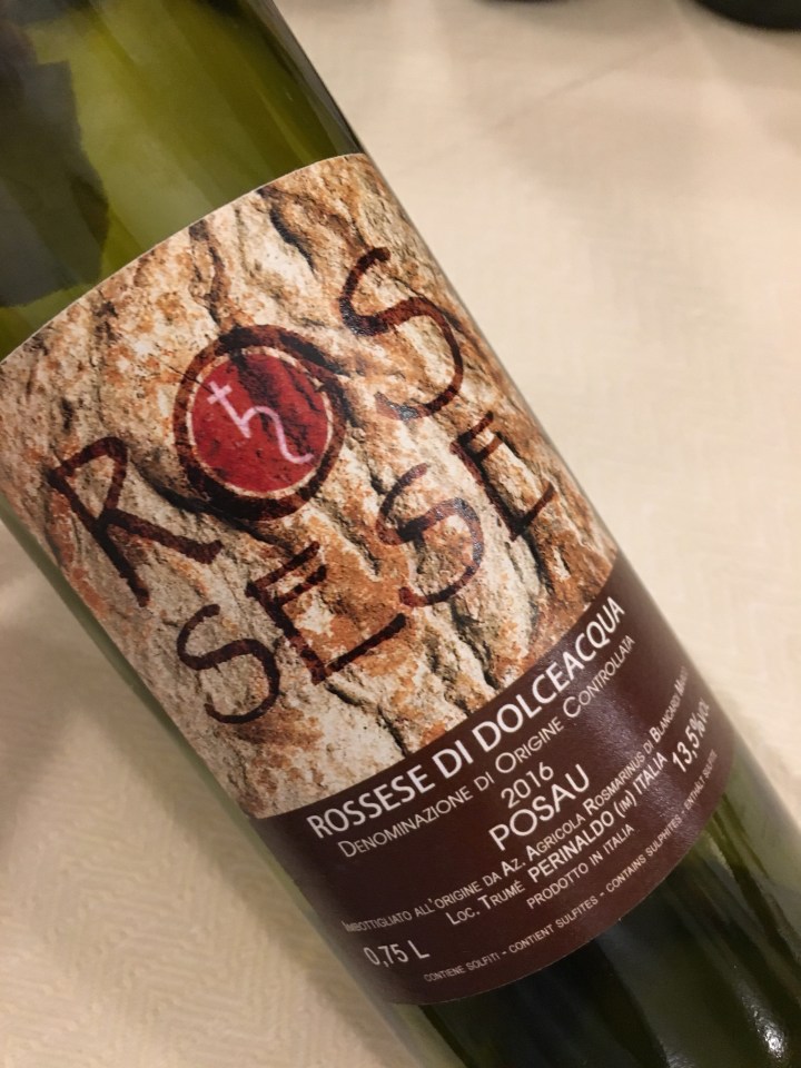 Rossese solo acciaio da vigne vecchie nella sottozona di Posau. Colore rubino squillante che lascia spazio ad una graziosa trasparenza, quasi da Pinot Noir, agile e molto femminile invoglia fin da subito all’assaggio, ma siccome sono un noioso sommelier prima devo comprenderne il carattere a livello olfattivo. Il naso è un esplosione di fiori, che vanno dalla violetta alle rose rosse con anche dei soavi richiami di lavanda, mentre la nota fruttata si incupisce un po’ ricordando i mirtilli di bosco. Sullo sfondo vive il carattere terroso ed ematico del Rossese (che soffre un po’ la riduzione) descrivendosi con ricordi di ruggine e foglie bagnate, rimanendo comunque snello e molto piacevole. In bocca prosegue molto coerentemente, pervadendomi con l’intensità della violetta e la croccantezza del frutto (che sembra farsi più ciliegia che mirtillo), il tannino presente e ben fatto va a completare una struttura scattante e dinamica, rendendo la bevuta scorrevole e molto intrigante. Me lo immagino proprio adesso, che sta arrivando il caldo estivo, la sera al mare, in terrazza guardando il sole rosso che tramonta, sicuramente da servire fresco, sarà capace di accompagnare con brio e giovialità un aperitivo con formaggi freschi o semplicemente due chiacchiere tra amici.