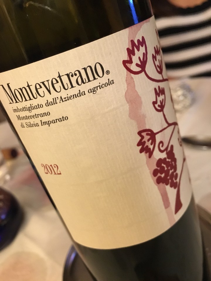È un sabato sera, a cena tra sommelier, e come ogni volta ci divertiamo a stupire i nostri commensali proponendo bottiglie bendate, particolari ed intriganti. Con grande generosità Alessio ha deciso di condividere con noi un vino sontuoso, elegante e con un grande blasone… il Montevetrano 2012 di Silvia Imparato. È una sapiente unione tra Cabernet Sauvignon, Aglianico e Merlot (che nasce e cresce in Campania), studiata e supervisionata da Riccardo Cotarella, grande esponente della comunità enologica italiana. Ha un colore intenso e carico, scuro come il Merlot, ma anche luminoso grazie alla vivacità dell’Aglianico della zona di Salerno. Al naso è complesso e variegato, parte con ricordi di carne cruda (che mi accompagneranno per tutta la degustazione) e poi si sviluppa su frutta scura (come more di gelso, ribes nero e amarene), poi rinfrescanti note balsamiche di alloro e resina, finendo con dolci e piacevoli speziature, divise tra cioccolato fondente, chiodi di garofano e affumicatura. Di contorno sviluppa una terrosità di humus e violetta appassita che lo rende molto caratteristico ed interessante, senza offuscare la grande mineralità ferrosa, che probabilmente ci indica qualcosa di più sul suo territorio di nascita. In bocca è materico, pieno, speziato, carnoso e scorrevole, con una percezione tannica estremamente delicata. Finisce sapido e con una deliziosa nota di arancia amara, grande punto di forza dell’Aglianico campano. Un vino che alla cieca stupisce, perchè affrontato senza i preconcetti sulla ruffianaggine dei vitigni internazionali, che anzi quando vengono declinati così sono in grado di far provare emozioni rare e sincere. Stupendo da bere adesso intorno a un tavolo imbandito di pecorini stagionati in grotta o in versione invernale abbinato al cinghiale in salmì.