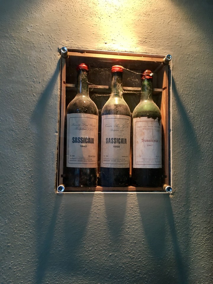 Con un grande sorriso ci accoglie Benedetta, che con garbo e minuziosità ci racconta la storia che ha creato la leggenda dell’enologia italiana. Una storia che nasce nei primi anni ’40 dall’estro lungimirante di Mario Incisa della Rocchetta, che per primo intuì il grande potenziale enologico di un territorio snobbato da tutti. Con lei parliamo di territorio, zonazione, investimenti e tecniche specifiche per garantire ogni anno il massimo della qualità. Con molto trasporto ci guida alla scoperta di alcuni particolari interessanti e meno conosciuti della classica storia, che troviamo ben descritta in moltissimi libri e articoli. Le parole di Benedetta sono talmente romantiche e narrative da trasportarci in un viaggio che sembra non finire mai. Ritorniamo con i piedi per terra quando ci mostra la prima bottiglia di Sassicaia mai prodotta, la 1945 con un tenore alcolico bassissimo di 10,5 gradi, una rarità che rappresenta l’impianto basale del grande successo dei vini di San Guido.