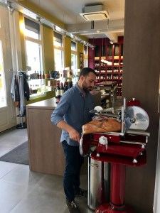 La giornata comincia con le medesime attività di tutti i giorni, sveglia presto e subito a fare colazione. Stamattina mentre mi gusto lo “yogurt dei campioni” accendo il MacBook e cerco un articolo che avevo visto ieri sul web. Il suddetto parla della recente anteprima dei vini di Radda, con un focus particolare sull’annata 2016, soprannominata la grande bellezza dal sito intothewine.org. Leggendo il bel post non posso che condividere le affermazioni dello scrittore, la 2016 è un’annata di eleganza sopraffina, in cui i vini di Radda trovano una straordinaria aderenza alla storia e alla leggenda del suo territorio. Dopo il pasto mattiniero faccio il mio allenamento e poi scendo per cominciare questo venerdì 31 maggio. Oggi apro io, e lavoro con Cèline, insieme partiamo subito in quarta, infatti arriviamo alle 14.40 senza neanche accorgercene. Il pomeriggio passa tra un cliente e l’altro, e molti di loro chiedono di affettare salumi e prosciutti, un ottimo modo per allenare le mie doti di tagliatore alla guida della stupenda Berkel che abbiamo in negozio!