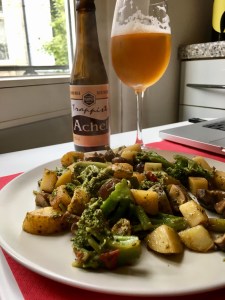 Mi sveglio presto, come ogni mattina d’altronde, perchè non posso perdere l’abitudine di sfruttare tutte le ore che compongono la giornata. Quindi con calma e precisione svolgo le sacre attività della mattina, e devo confessare che sto provando un nuovo modo di vivere. Sto portando avanti una prova con il mio fisico, quella di non bere più caffè. Da quando sono arrivato in Belgio ho deciso di affrontare questa challenge per provare a tutti che prendiamo il caffè per abitudine più che per un reale bisogno di energia. In solitaria sto riscontrando che una colazione ricca e un successivo allenamento riescano a sostituire il caffè attivando ogni muscolo del mio corpo e dandomi la spinta per affrontare la giornata con la giusta grinta. Quindi alle 11.35, dopo essermi dedicato a ripassare un po’ di nozioni sul vino mi appresto a scendere per cominciare il turno lavorativo. Oggi sono Ruben, e devo dire che mi trovo molto bene a lavorare insieme a lui, è un ragazzo tranquillo e molto gentile, che è sempre disponibile per darmi una mano e per spiegarmi come svolgere certi compiti. Oggi ci dedichiamo a preparare i pacchi da spedire ai clienti che hanno acquistato la sottoscrizione mensile de La Scoperta. Un servizio attraverso il quale proponiamo ogni mese tre bottiglie diverse, che inquadrano perfettamente la mission del negozio, accompagnate da un Magazine che racchiude all’interno la descrizione delle bottiglie e notizie generali per alimentare la curiosità dei clienti. Con curiosità lo sfoglio per andare a cercare l’appendice finale dove con molta felicità trovo un breve articolo che ho scritto io. Esso tratta della Toscana e in particolare dei vitigni autoctoni che accompagnano il Sangiovese nelle sue avventure enoiche. Per me è una bella soddisfazione, perchè Inge mi ha permesso di esprimere una delle mie grandi passioni, la scrittura. Proseguiamo il pomeriggio in tranquillità, mentre sistemiamo gli scaffali dell’Enoteca. Alle 18.00 chiudiamo e salgo in casa per la mia serata tête a tête con me stesso. Scelgo di cucinarmi un bel mix di vegetali, tra cui broccoli, patate, pomodori e funghi, il tutto insaporito con aglio e alici sciolti nell’olio iniziale.