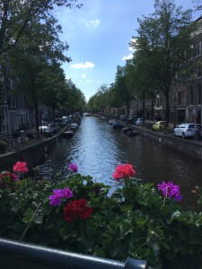 Driiin, suona la sveglia delle 5.30, mi alzo dal letto e vado subito in cucina e preparo il mio quotidiano yogurt con lamponi, mandorle e cioccolata fondente, poi mi dedico ad un velocissimo allenamento. Segue una calda doccia ritemprante prima di uscire, e poi una volta terminate le azioni routinarie mi incammino verso la stazione di Antwerpen Centraal, perchè alle 6.44 parte il treno che mi porterà ad Amsterdam! Nella città di Van Gogh incontrerò delle mie conoscenze fiorentine, Paola e la sua famiglia (il marito Fulvio insieme ai figli Christian e Rachele) che sono in vacanza insieme ad una famiglia di amici napoletani. Quando Paola mi ha chiamato dicendomi che sarebbero stati ad Amsterdam tutto il weekend, non ci ho pensato due volte e sono andato ad acquistare i biglietti del treno per raggiungerli e passare una giornata insieme a loro. Il viaggio scorre veloce e super puntuale, e alle 8.40 arrivo a Dam. Esco dalla bellissima stazione e se mai avessi avuto il dubbio di essere arrivato nella città giusta, ci pensa l’aria a farmelo capire, infatti basta annusare un po’ in giro e l’odore di ganja funge da marker territoriale. Io lo interpreto come un grande profumatore d’ambiente che crea una pellicola protettiva intorno alla città, preservandola dallo scorrere del tempo. Faccio colazione con un cookie al cioccolato e poi mi avvio verso l’hotel di Paola. Con lei e Fulvio ci incontriamo nella hall del bellissimo albergo, abbracciamo e cominciamo a chiacchierare, poi mi portano a salutare l’altra coppia in viaggio con loro e subito dopo i loro figli che sono ad aspettarli in camera. Oggi per loro è il quarto giorno e li vedo abbastanza provati, a parte Paola che mi sembra pimpante e curiosa di conversare sulle mie avventure in terra belga. Perciò vista la loro poca voglia di darsi una mossa, io e lei ci avviamo a fare un giretto verso il centro. Si va di passo svelto percorrendo le strade che si snodano in mezzo ai canali, e osservando le tipiche case storte di Amsterdam, ridendo e parlando di cosa è successo in questo mese e mezzo in cui non ci siamo visti.