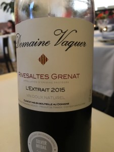 Per il secondo dessert ci servono un Rivesaltes L’extrait 2015, un Vin doux Naturel che proviene dalla regione del Languedoc-Roussillon, il cui perfetto abbinamento è il cioccolato.