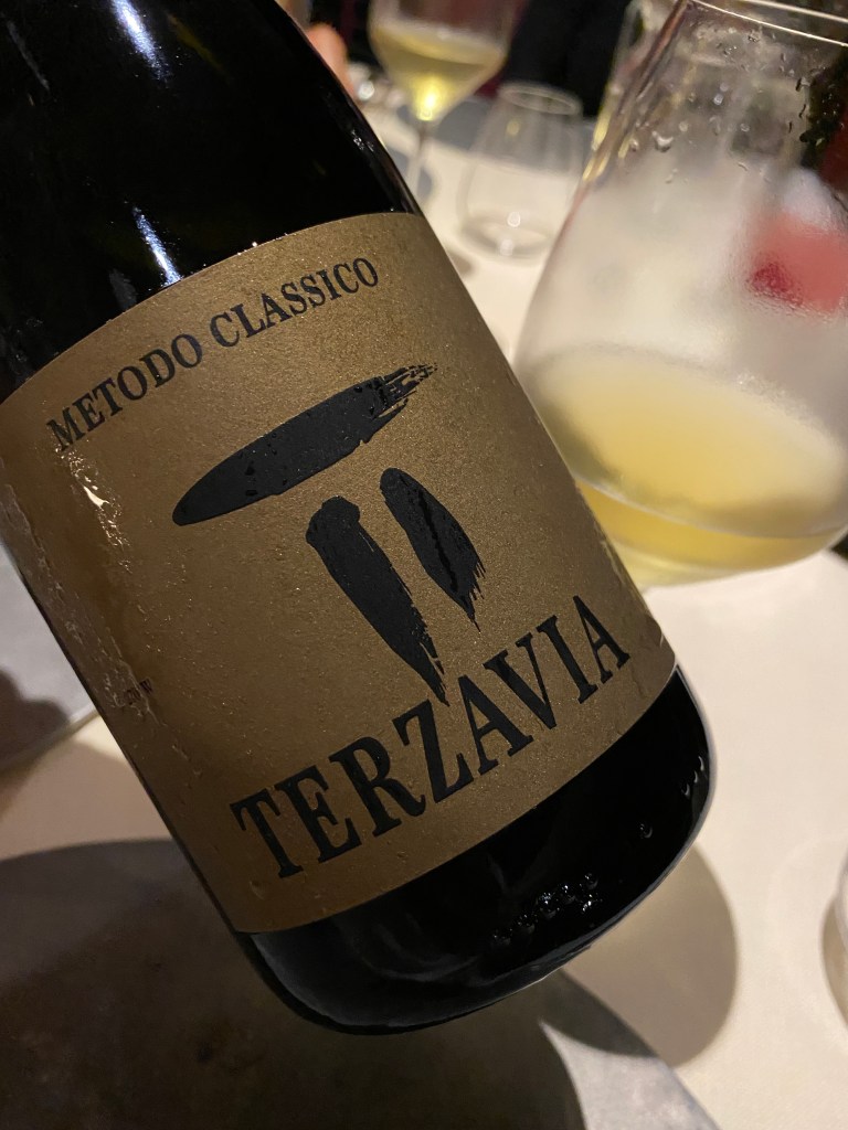 Come recita l’etichetta, questo spumante siciliano rappresenta la terza via del Grillo. Il vitigno principe della produzione di Marco de Bartoli e della zona di Marsala. La sua importante dotazione in acidi fissi, lo rende camaleontico e quindi ideale per una continua sperimentazione. Una di queste è stata la sua spumantizzazione con l’arte del Metodo Classico insegnataci dai cugini d’oltralpe. I 18 mesi di autolisi e la mancanza di dosaggio lo rendono sincero e molto esuberante. Il filo di riduzione iniziale crea il pathos dell’attesa e regala una gustosa chiusura salina, anzi salmastra.