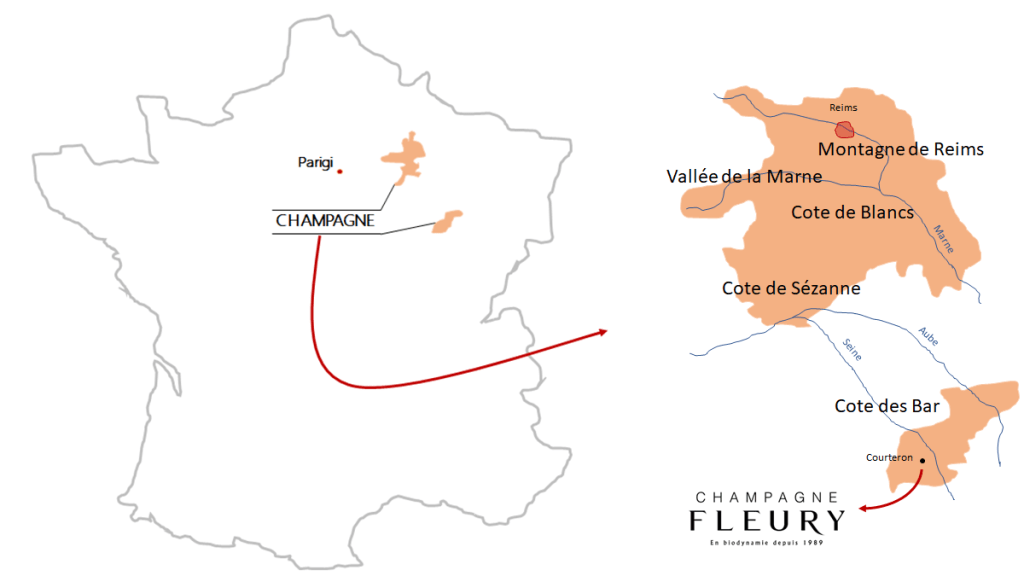 I Fleury si trovano a Courteron, nella Cote des Bar meridionale tra i paesi di Les Riceys e Mussy-sur-Seine, qua lo Champagne acquista un’anima più vinosa e avvolgente, sia per la posizione (più a sud rispetto all’area dei Grand Cru) che per la tendenza dei vignaioli a produrre vini più artigianali e che per alcuni aspetti ricordano i vini della vicina Borgogna. I terreni sono simili a quelli di Chablis, risalenti all’era del Kimmeridge, composti da calcari e coquillage (fossili marini incastonati nelle dure marne calcaree) e molto più ricchi di argille, che si rivelano ideali per donare struttura e fruttuosità al nobile Pinot Noir. Questa naturale inclinazione dell’ambiente viene ricalcata perfettamente dalla famiglia Fleury, che conta ben 12,5 ettari di Pinot Noir e solamente 2,5 ettari divisi tra Chardonnay, Pinot Blanc e Pinot Gris. Nonostante i pochi ettari vitati, la produzione è molto varia e comprende al suo interno Champagne con stili e periodi di autolisi molto diversi. Il vino di oggi è il Boléro 2004, la loro idea di millesimato che interpreta una decade di autolisi, attraverso uno stile genuino e molto generoso.