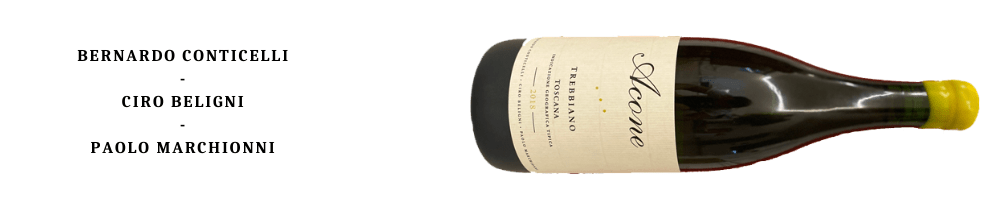 Acone è un toponimo, scelto per rappresentare al meglio quanto questo vino debba prima di tutto parlare di territorio. Ha molti punti in comune con il Trebbiano di Frascole, infatti comparandoli si riesce ad evincere con semplicità che sono figli di un territorio molto simile. Buona anche la seconda per il trio Conticelli, Beligni e Marchionni, che si stanno sempre più avvicinando al Trebbiano perfetto!